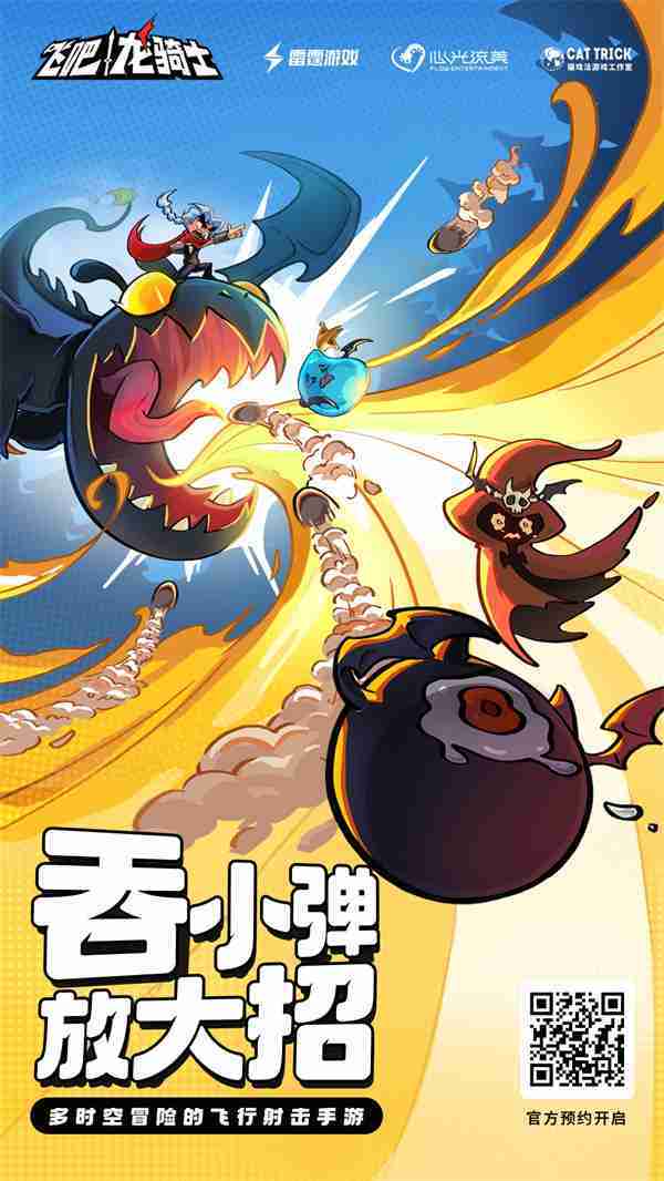 吞小弹,,,放大招!!!多时空冒险的飞行射击休闲手游《飞吧龙骑士》官方预约现已开启。。。。现在预约还有丰厚的福利等你领!!!大家可以关注《飞吧龙骑士》官方公众号,,了解最新游戏进展。。。。